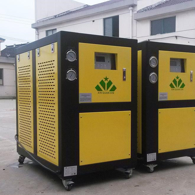 防爆冷水機是新冠信型號之一,將常溫的水通過冷水機的壓縮機制冷到一定的溫度以強化冷卻模具或機器,作為單機使用,散熱裝置為內(nèi)置之風(fēng)扇,主要有三個相互聯(lián)系的系統(tǒng):制冷劑循環(huán)系統(tǒng)、水循環(huán)系統(tǒng)、電器自控系統(tǒng)。
